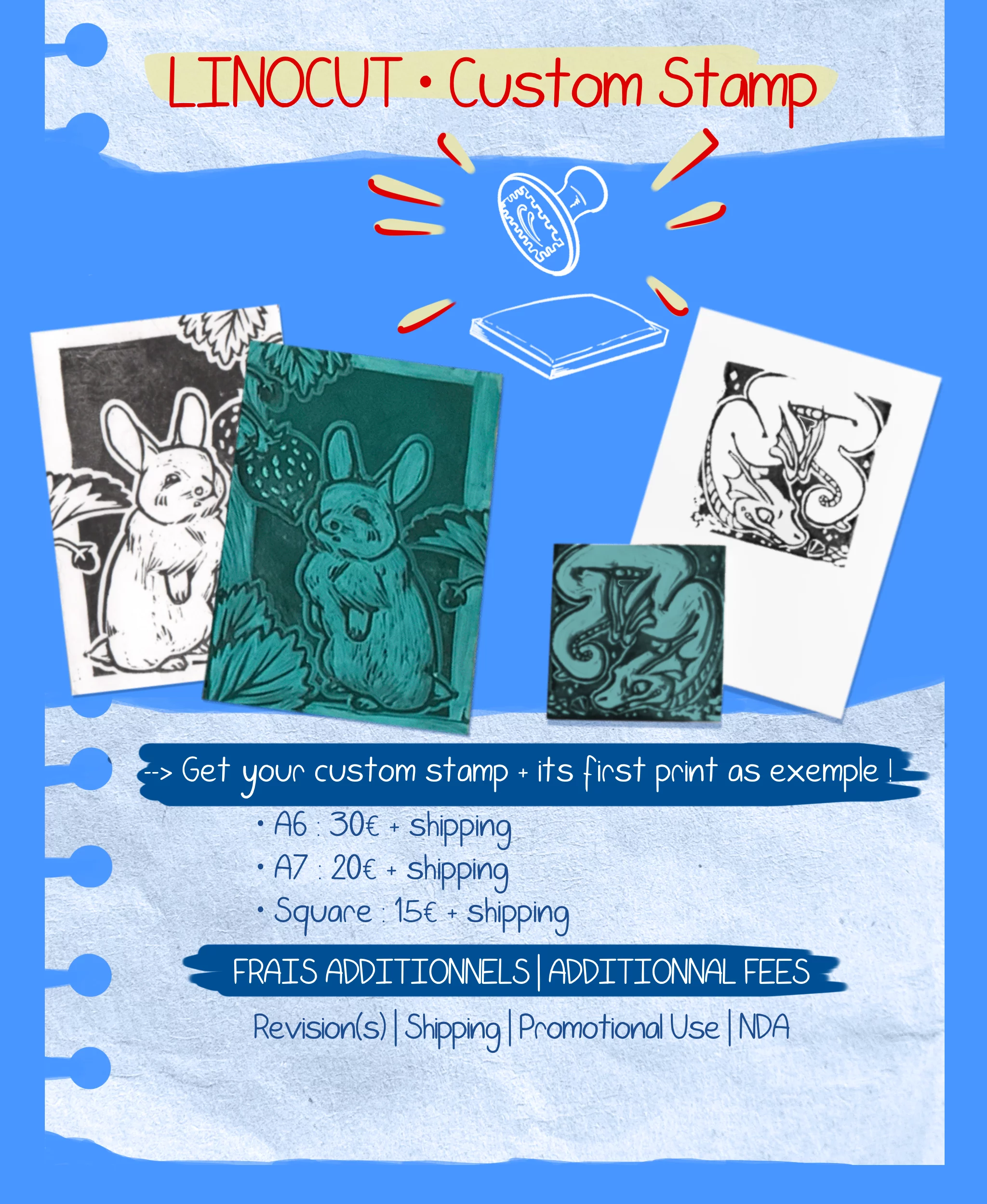 Que ce soit pour orner vos carnets, estampiller vos cartes ou égayer vos projets manuels, je crée pour vous ces tampons uniques à utiliser chez vous.